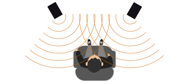 In einem Konzert, im Gespräch oder zu Hause mit dem Stereo-Lautsprechersystem hören wir den Schall von vorn. Wenn der Schall von der Seite kommt, drehen wir beim aktiven Zuhören unseren Kopf so, dass wir den Schall wieder von vorne wahrnehmen können. Das entspricht unserem Hörverhalten und lässt uns Klang unverfälscht und genau wahrnehmen.